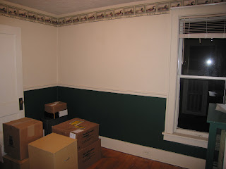 The finished ceiling - we installed a cove moulding at the ceiling to finish the ceiling. We are so excited that we are no longer stepping on chunks of ceiling and it looks so clean and bright. The only problem is now the walls look really terrible. After we removed the wallpaper we discovered the walls also had chipped plaster and cracks. Oh well, for now we'll just try to look up and admire the pretty ceiling.